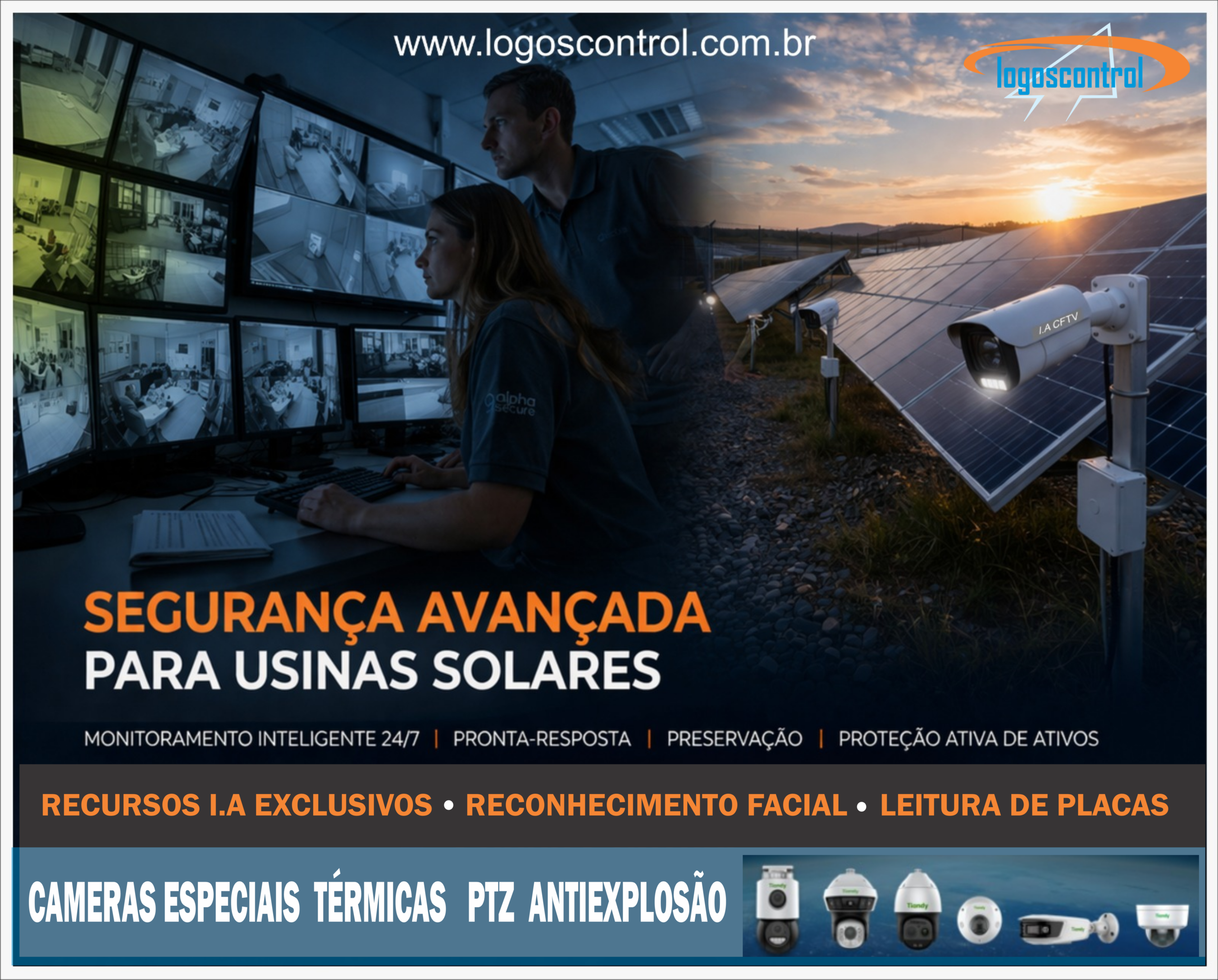 Implantação de Sistemas de CFTV: Projetos customizados para a proteção perimetral e monitoramento inteligente de usinas solares.